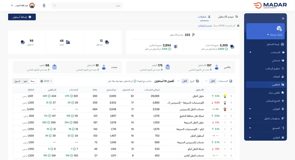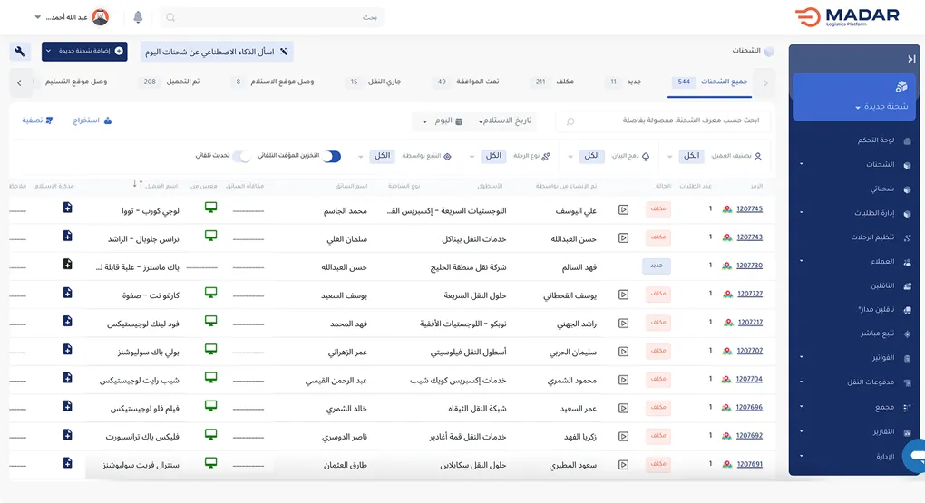مع مدار، يمكنك الوصول إلى شبكة أوسع من العملاء، وتحليل اتجاهات الطلب حسب نوع الحمولة والوجهات، مما يعزّز كفاءتك ويزيد فرص النمو.